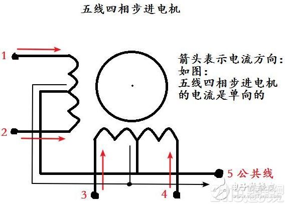 步進(jìn)電機(jī)的“相” 就是說明步進(jìn)電機(jī)有幾個線圈(也叫做繞組)。 “線” 就是說明步進(jìn)電機(jī)有幾個接線口。 “極性” 分為 單極性 和 雙極性。如果步進(jìn)電機(jī)的線圈是可以雙向?qū)щ姷模敲催@個步進(jìn)電機(jī)就是雙極性的,相反,如果步進(jìn)電機(jī)的線圈是只允許單向?qū)щ姷模敲催@個步進(jìn)電機(jī)就是單極性的。 上面的三個只要知道其中兩個,就可以推斷出第三個。 如: 五線四相步進(jìn)電機(jī) 就是有5個接線口,4個線圈。 由于有五個接線頭,即接線頭的個數(shù)是奇數(shù)個,也就是說有一個接線頭是公共接頭,所以它的線圈的導(dǎo)電方式就只允許是 單向的 ,即這個步進(jìn)電機(jī)是單極性的。如下圖: