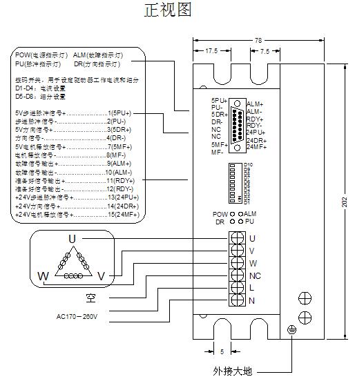 驅(qū)動(dòng)器接線、尺寸示意圖