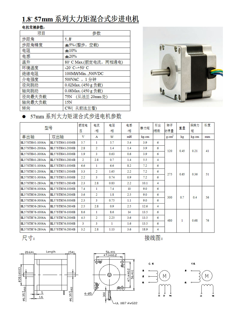 | 1.8°57mm系列兩相大力矩混合式步進(jìn)電機(jī) |